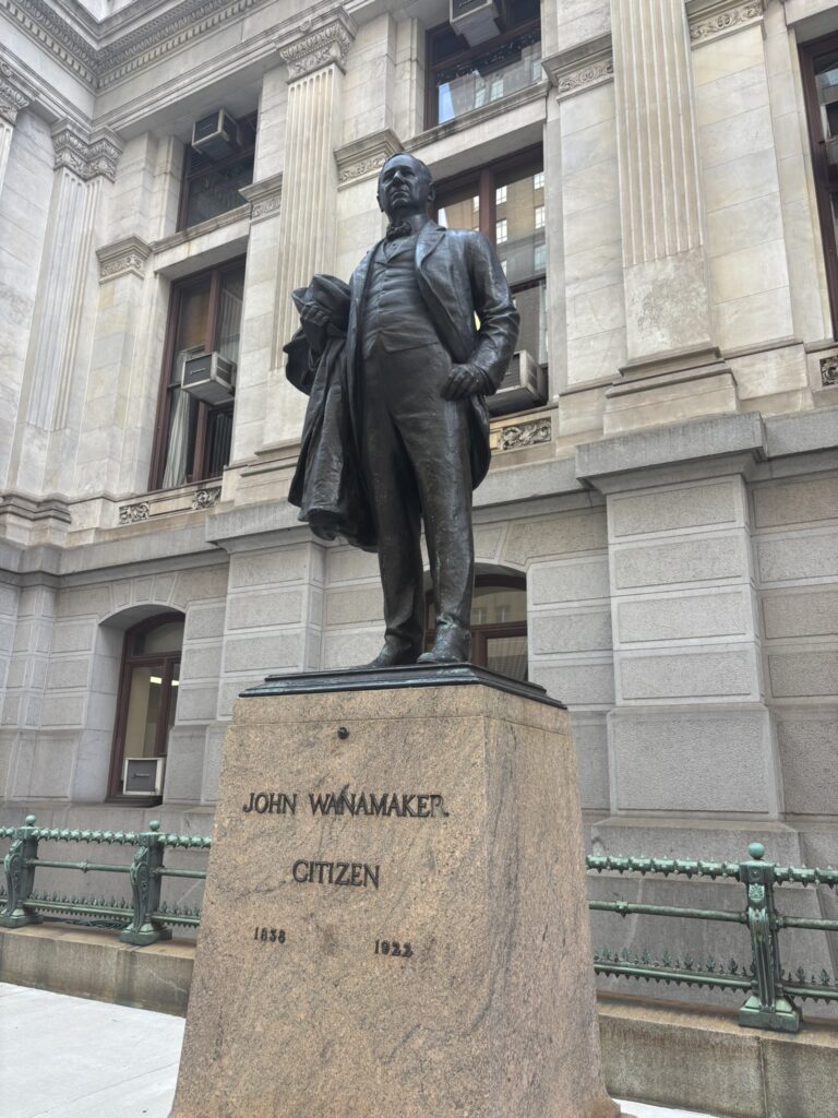 Em 1910 o empresário concluiu o magnífico Edifício Wanamaker, grande loja com doze pavimentos defronte à Prefeitura Municipal. A inauguração, no ano seguinte, contou com a presença do presidente americano, William Howard Taft. O elemento mais destacado do edifício, que existe até hoje, é o esplêndido átrio central revestido de mármore, com sete andares de altura. O chamado “Grand Court”, com sua águia de bronze e imenso órgão de tubos, já serviu de cenário para vários filmes. Essa grande loja foi a primeira do país a ter luz elétrica, ar-condicionado e outras comodidades.