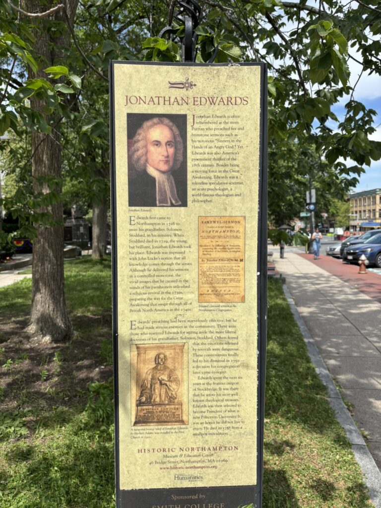 Jonathan Edwards (1703-1758), ilustre pregador, avivalista e teólogo reformado do século 18, viveu por 24 anos em Northampton, Massachusetts (1726-1750), primeiro como auxiliar de seu avô, Rev. Solomon Stoddard, e depois como pastor titular da igreja congregacional, fundada em 1654. Ao longo dos séculos, a igreja teve cinco templos, construídos nos seguintes anos: primeiro: 1654, segundo: 1661, terceiro: 1737, quarto: 1812, quinto: 1878. As fotos abaixo, tiradas em 30.06.2025, mostram lugares associados à família Edwards nessa cidade, inclusive o antigo Cemitério de Bridge Street.