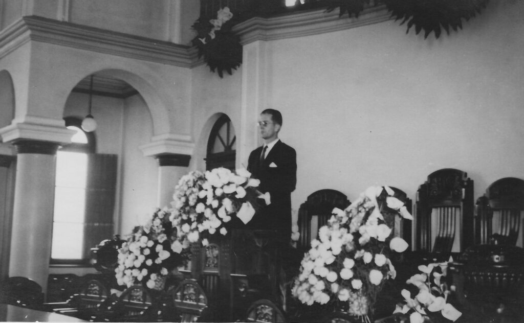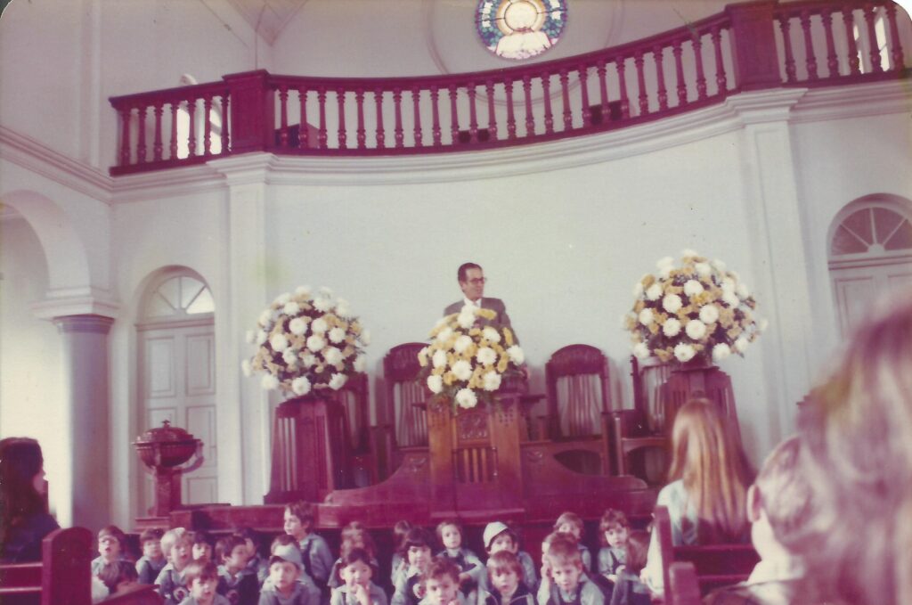 Rev. Oswaldo no púlpito da igreja de Curitiba.