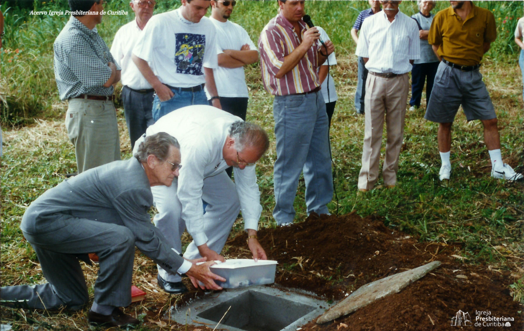 Com o Rev. Elias Abrahão no lançamento de uma pedra fundamental, 1995. Ao microfone o Rev. Juarez Marcondes Filho.
