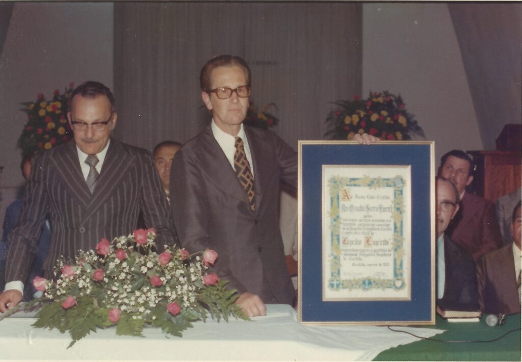 Homenagem como capelão do Hospital Evangélico de Curitiba, 1975.